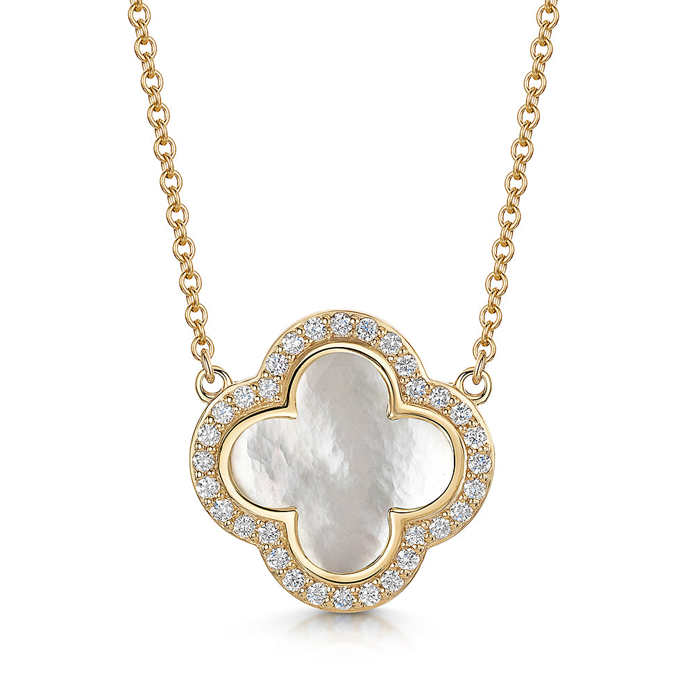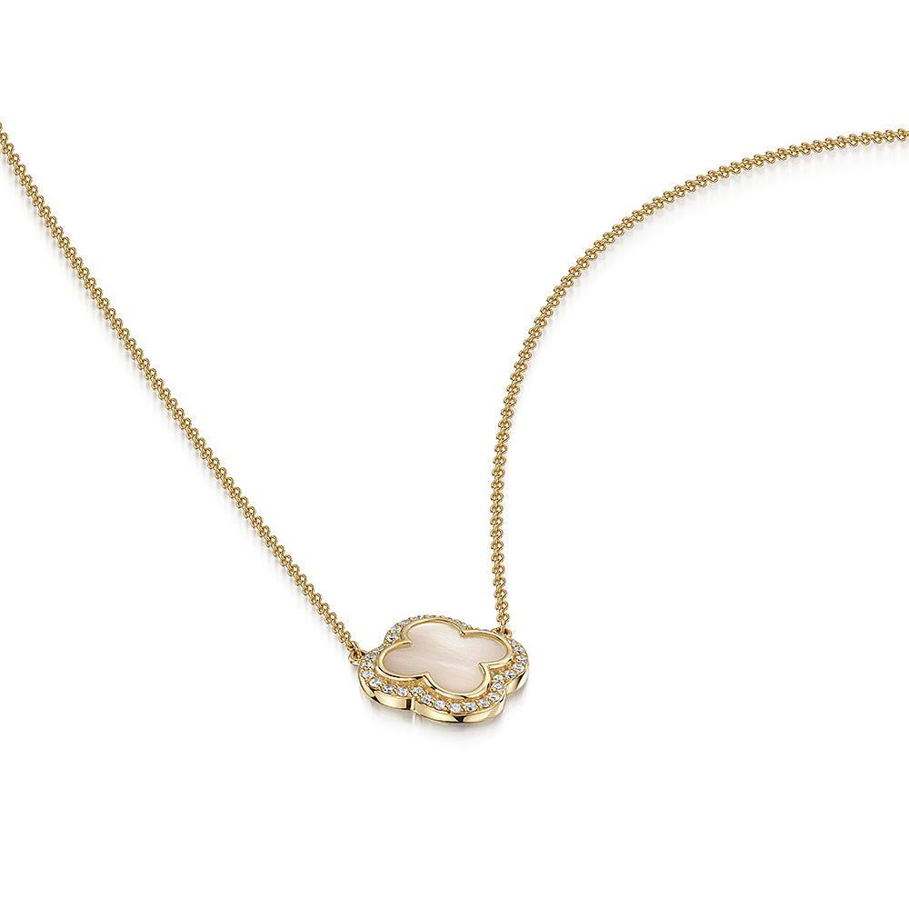 9ct Gold Mother Of Pearl & Diamond Necklace