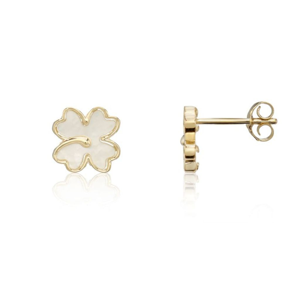 9ct Yellow Gold Mother of Pearl Clover Stud Earrings