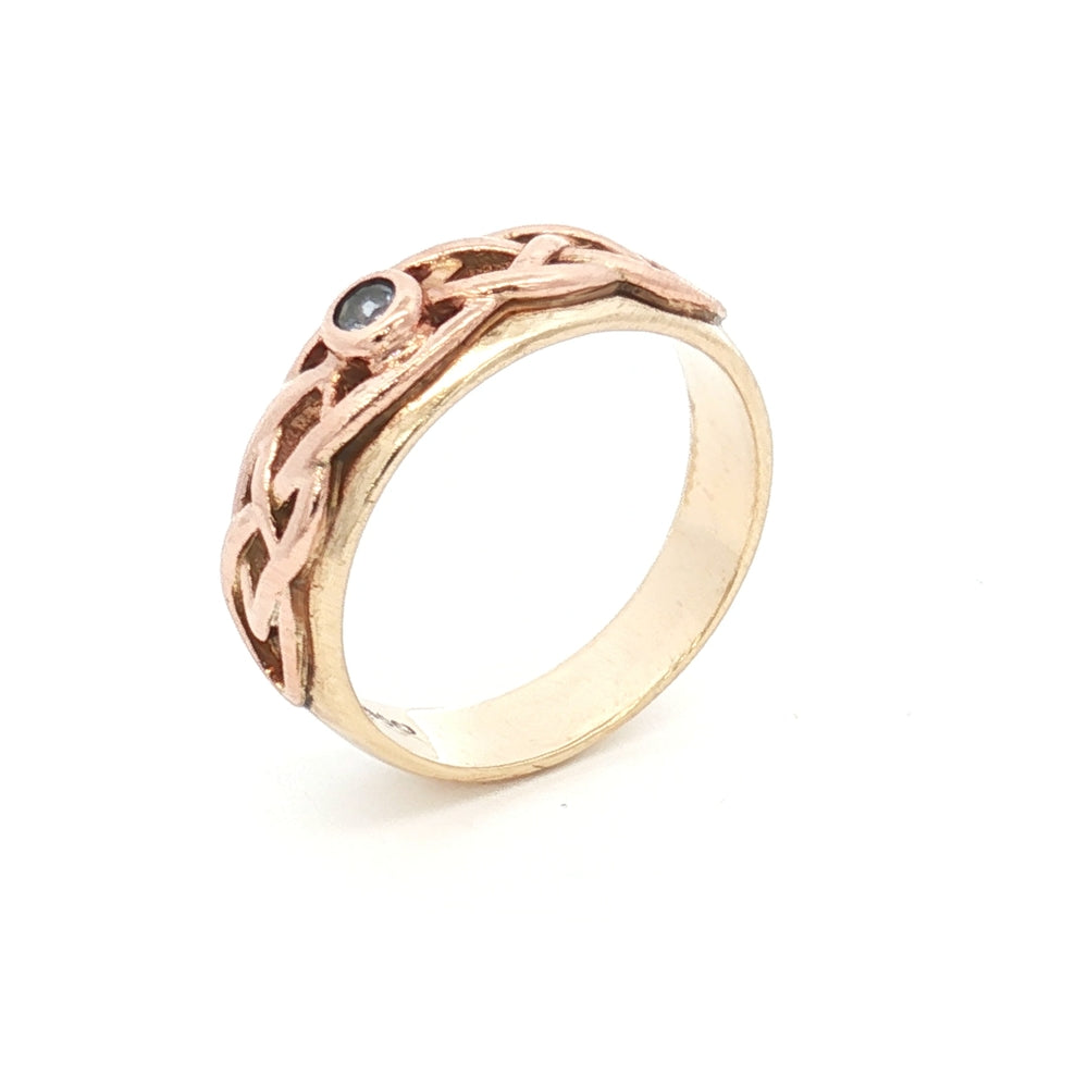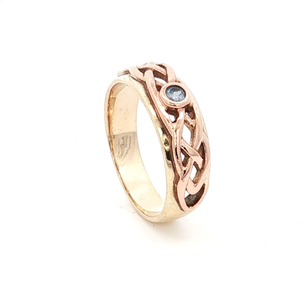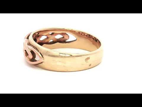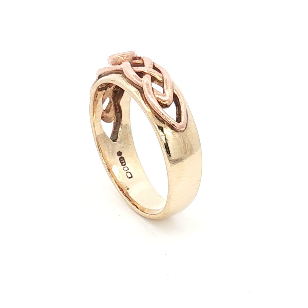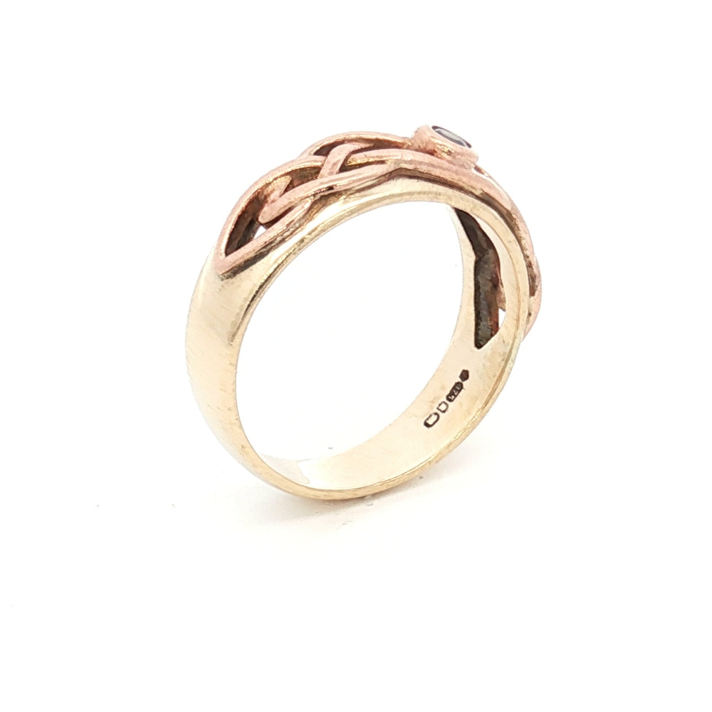 This exquisite 9ct gold ring showcases authentic Celtic design craftsmanship, distinguished by its incorporation of rare Welsh gold. Weighing 4.75 grams, the piece combines traditional artistry with the prestige of Welsh gold—a precious material steeped in heritage and significance. Sized Q, this ring offers both aesthetic appeal and investment value. With an insurance valuation of £950, it represents a substantial piece worthy of special occasions or discerning collectors. The Celtic motifs reflect timeless design principles, making this ring a meaningful choice for those seeking jewellery with cultural resonance and enduring quality.